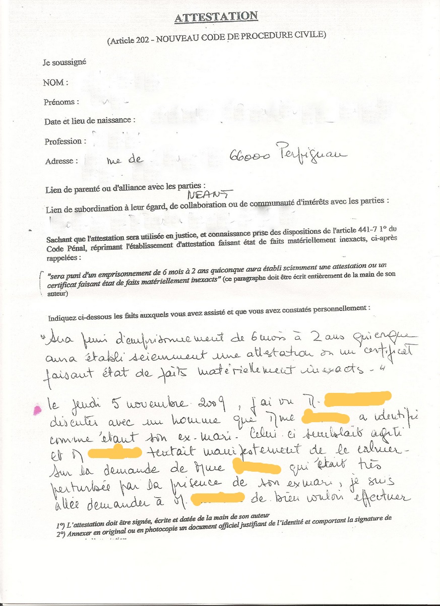 Le 5 novembre 2009 = Le soir, en rentrant chez moi en vélo, je surprends M. "Agresseur" caché derrière un arbre, juste devant le petit portail du jardin.