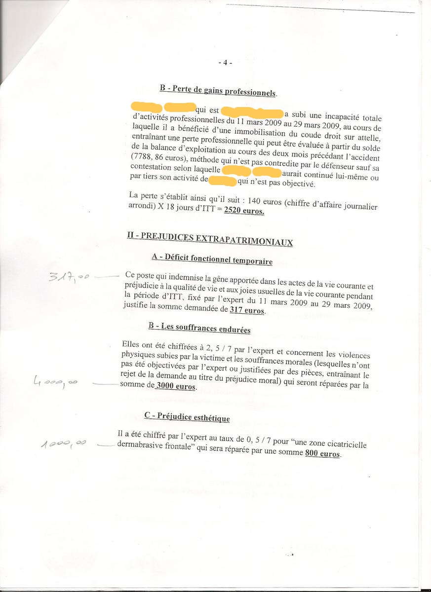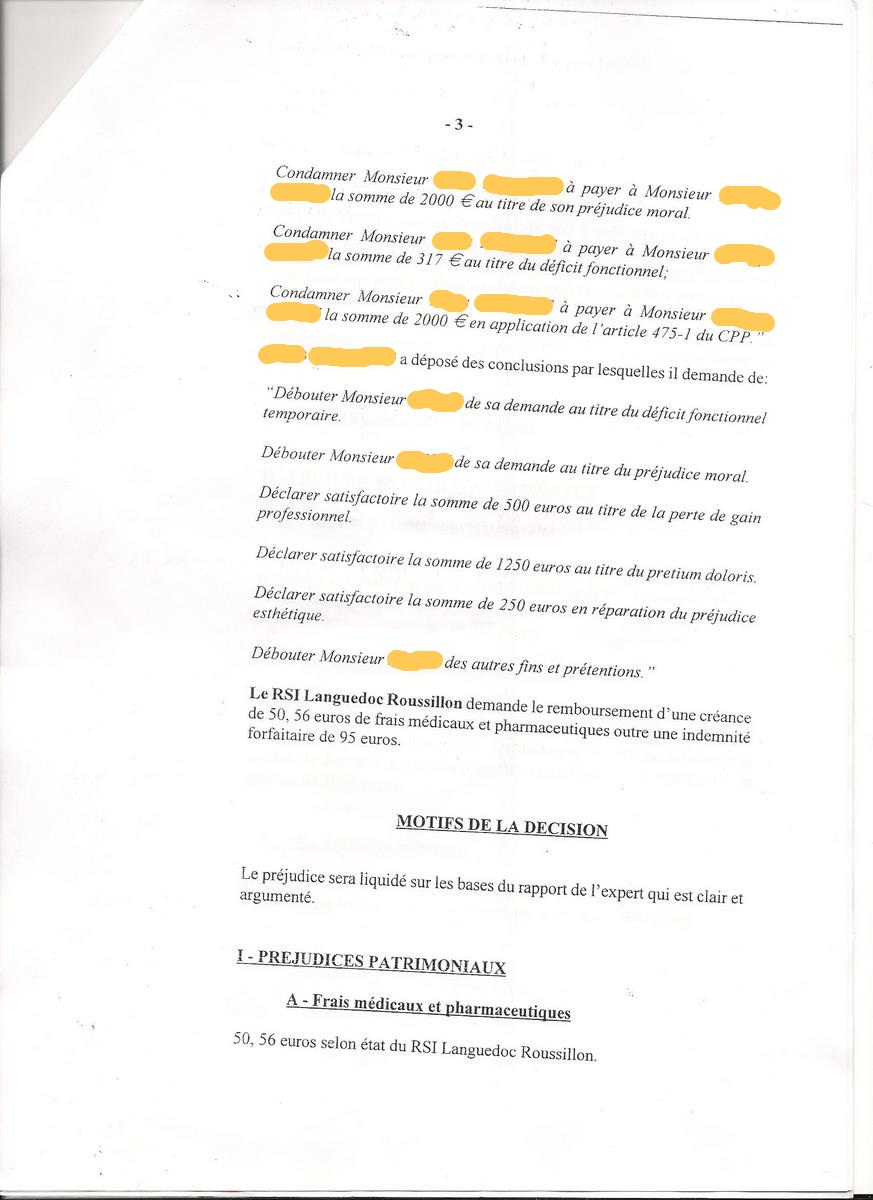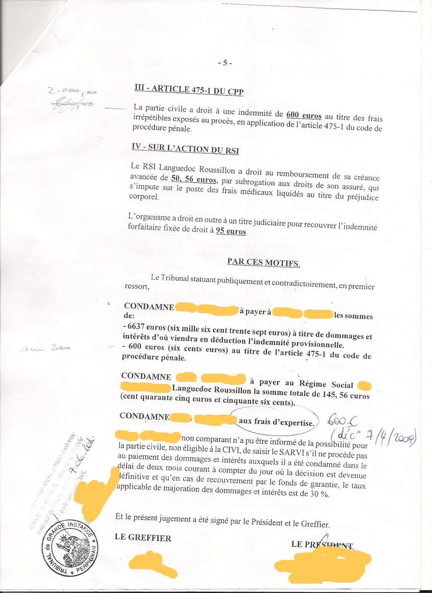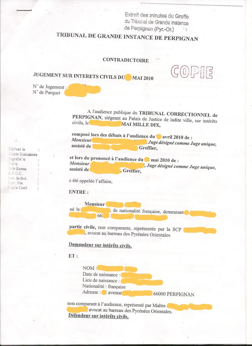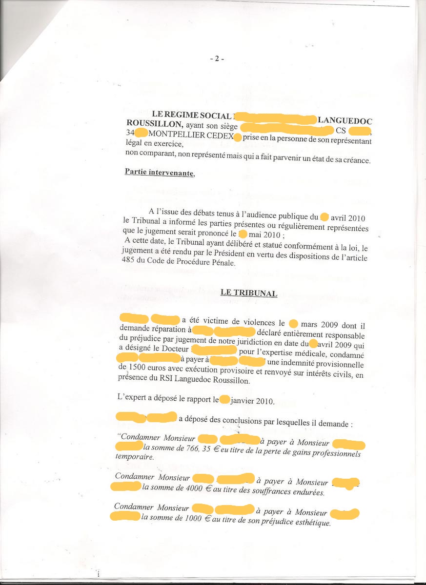 Suite àla violente agression du 28 décembre 2008, M. "Agresseur" continuera son harcèlement quotidien contre Madame "Victime".